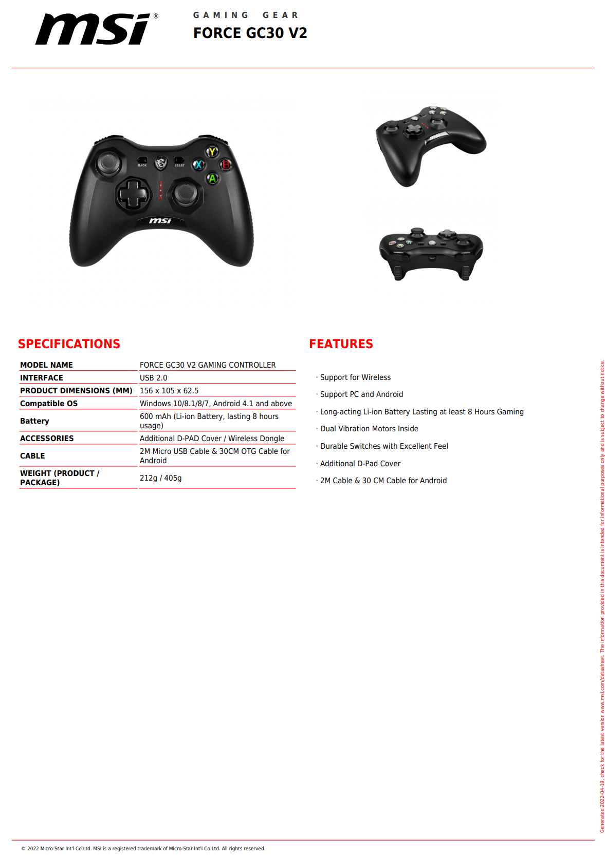 MSI Force GC30 V2 Wireless Gaming Controller